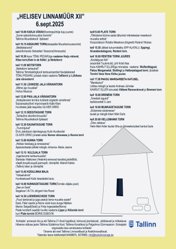 6.septembril algusega kl 10.00 ja viimase kontserdi algus kl 20.00!
